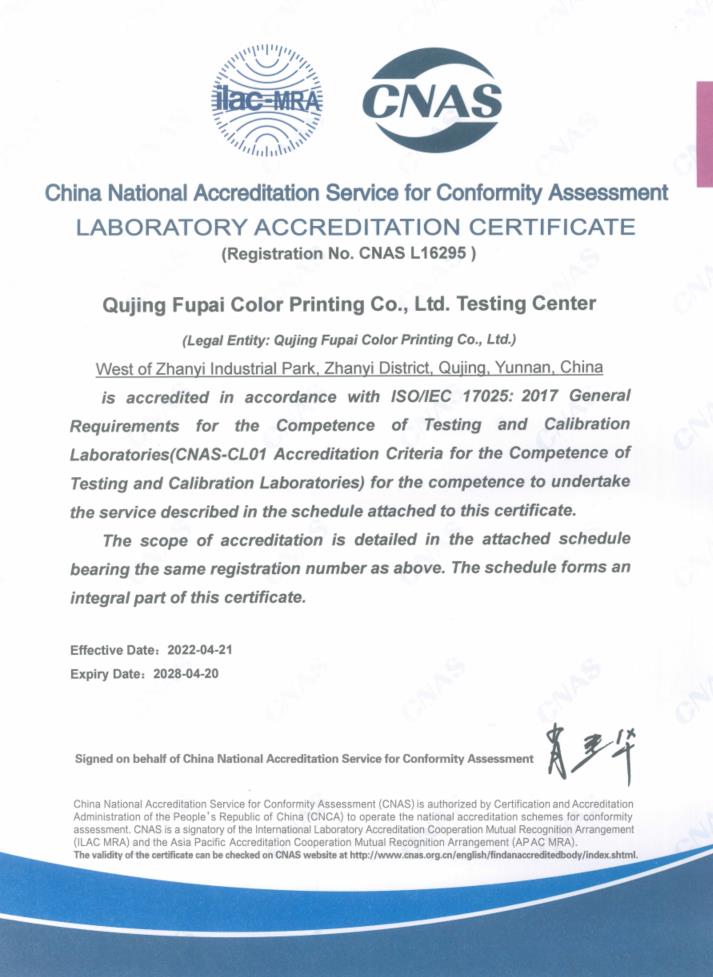 實(shí)驗(yàn)室認(rèn)可證書(shū)